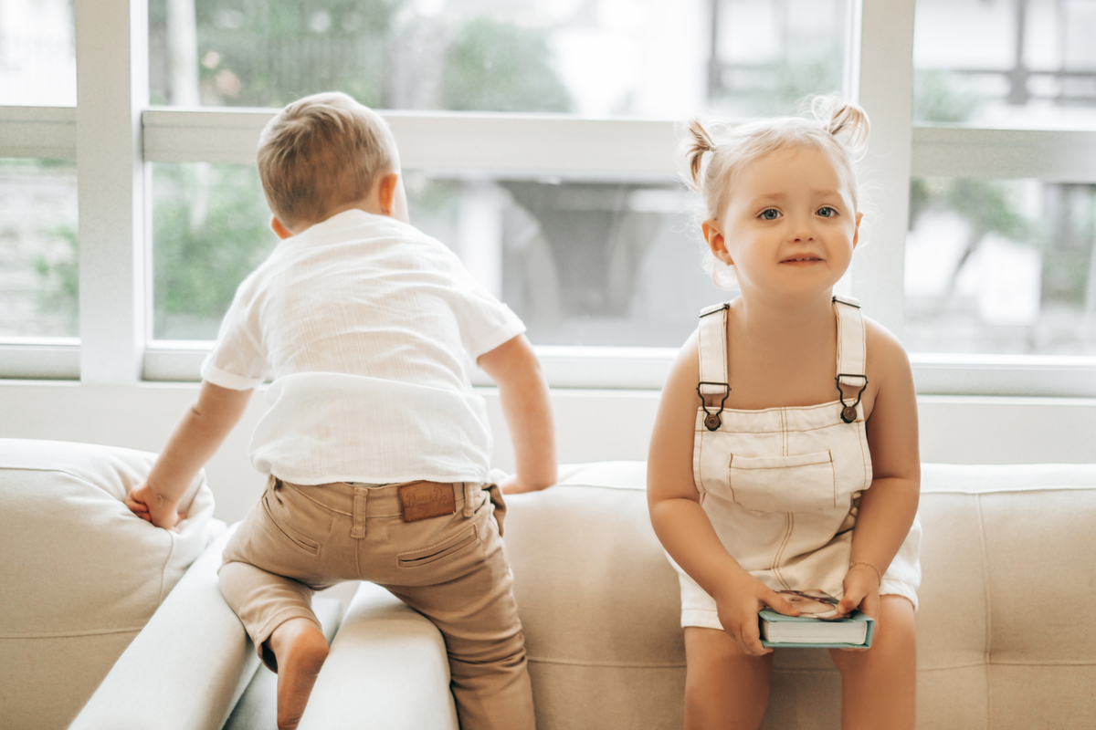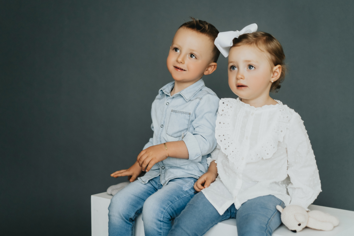 Uma sessão cheia de amor e interação entre irmãos- os Gêmeos Theo e Liz.